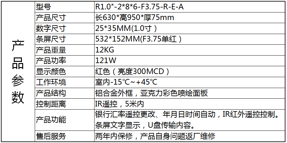 LED银行汇率屏R1.0-7*2*6-F3.75-R-2*0.5-E-A